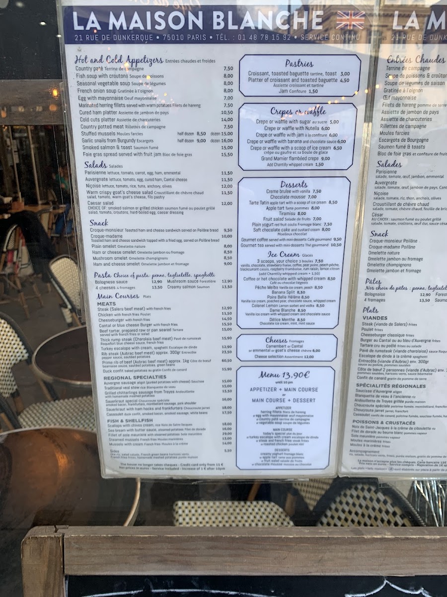 La Maison Blanche - 23-19 Rue de Dunkerque Menu